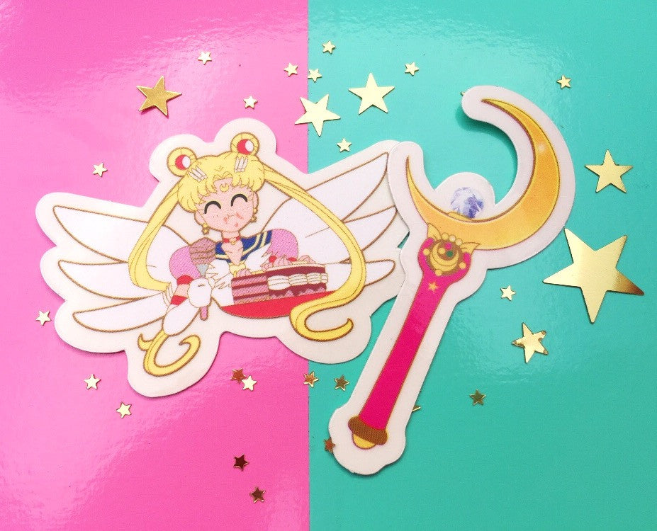 The Sailor Moon Sticker set is the best way to show off your Moonie spirit when you can't "put a pin on it!". 2 Per set! Perfect for ANY occasion! These unique stickers are: Die Cut CLEAR vinyl (the white is just the backing card!) Made with UV laminate that protects your die cut stickers from scratching, rain and sunlight. Both are 3 x 2